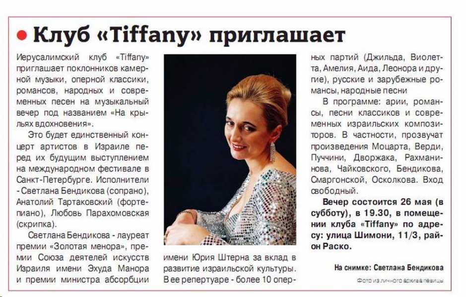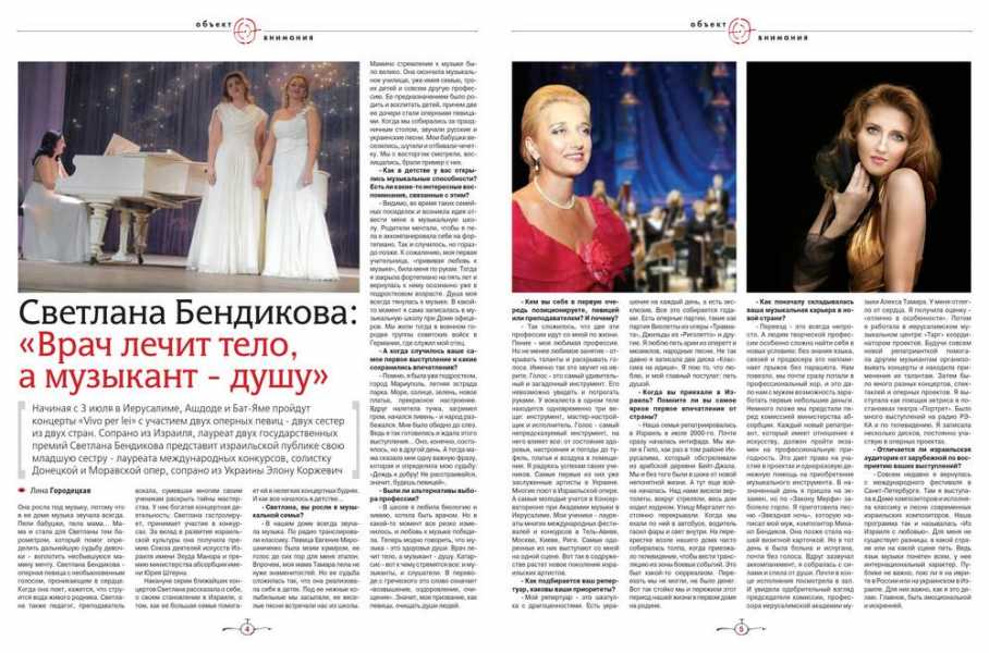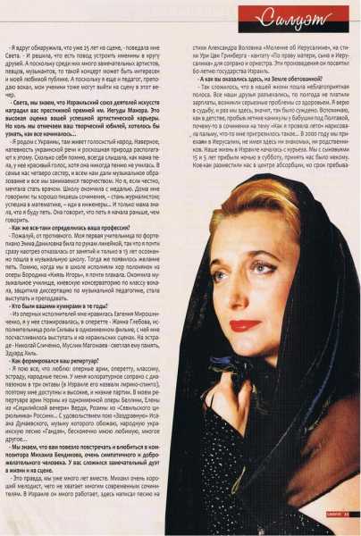 "My mother says," Svetlana excitatly tells me, "that when I was born, I immediately started singing. I sang before I even spoke. In first grade I started learning music at school, music theory, singing and I also played piano. I was lucky to be born to a musical family. My parents made sure that their four daughters will receive music education. Another sister of mine is an opera singer, and the other is an executive director of a cultural college."